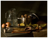 хлеб еле прорисовываются на бумаге. Техника "высокого ключа" заставляет в первую
